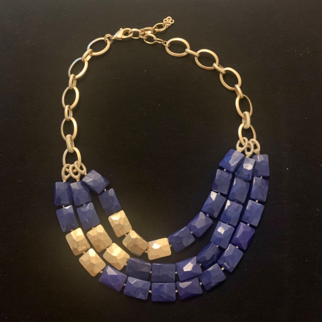 Add a touch of elegance to any outfit with the Bahari Necklace in Small. In Gold and Blue colors this stunning piece of costume jewelry is perfect for everyday wear or special occasions. The unique blue and gold color combination is sure to catch the eye and elevate any look.