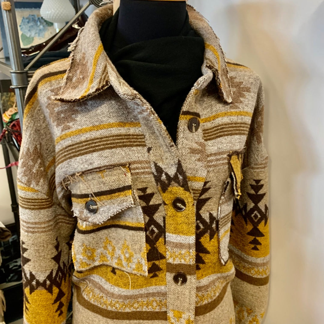 Hobo / distressed style with Aztek patterned fabric. A generous model.