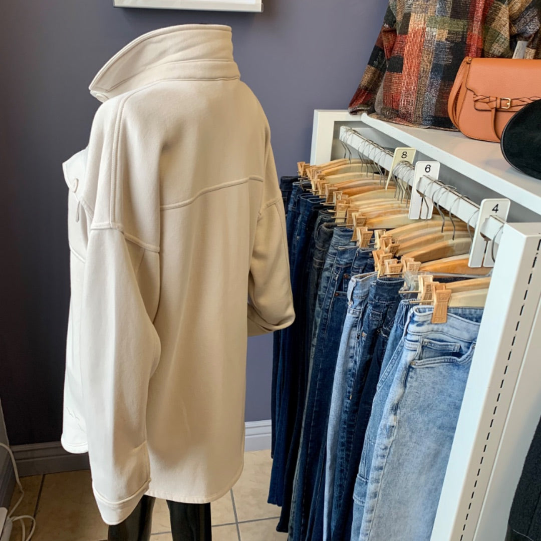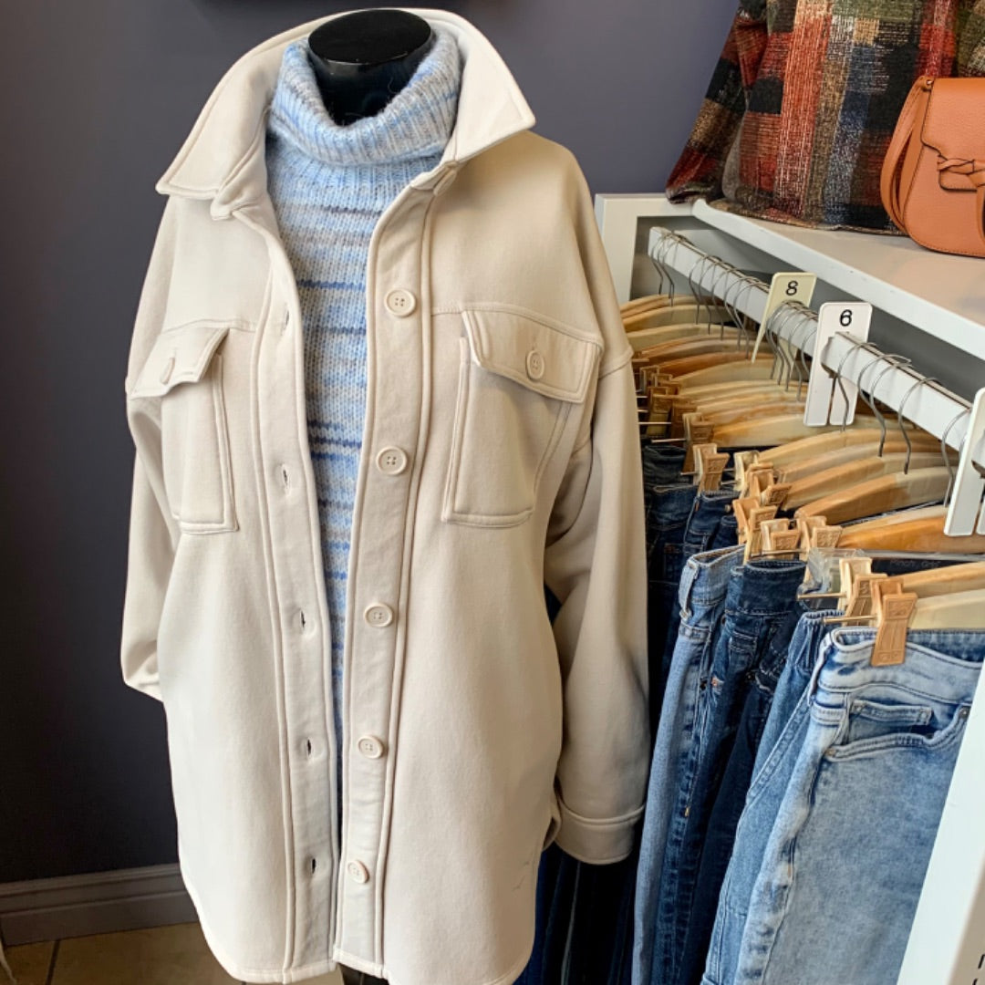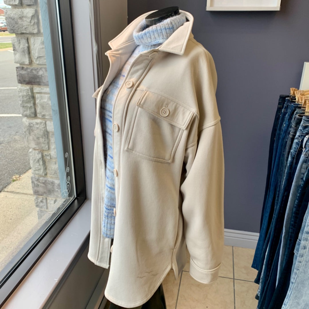 Soft, button up cardi/jacket with pockets. Great for that extra layer of warmth on a chilly evening/morning