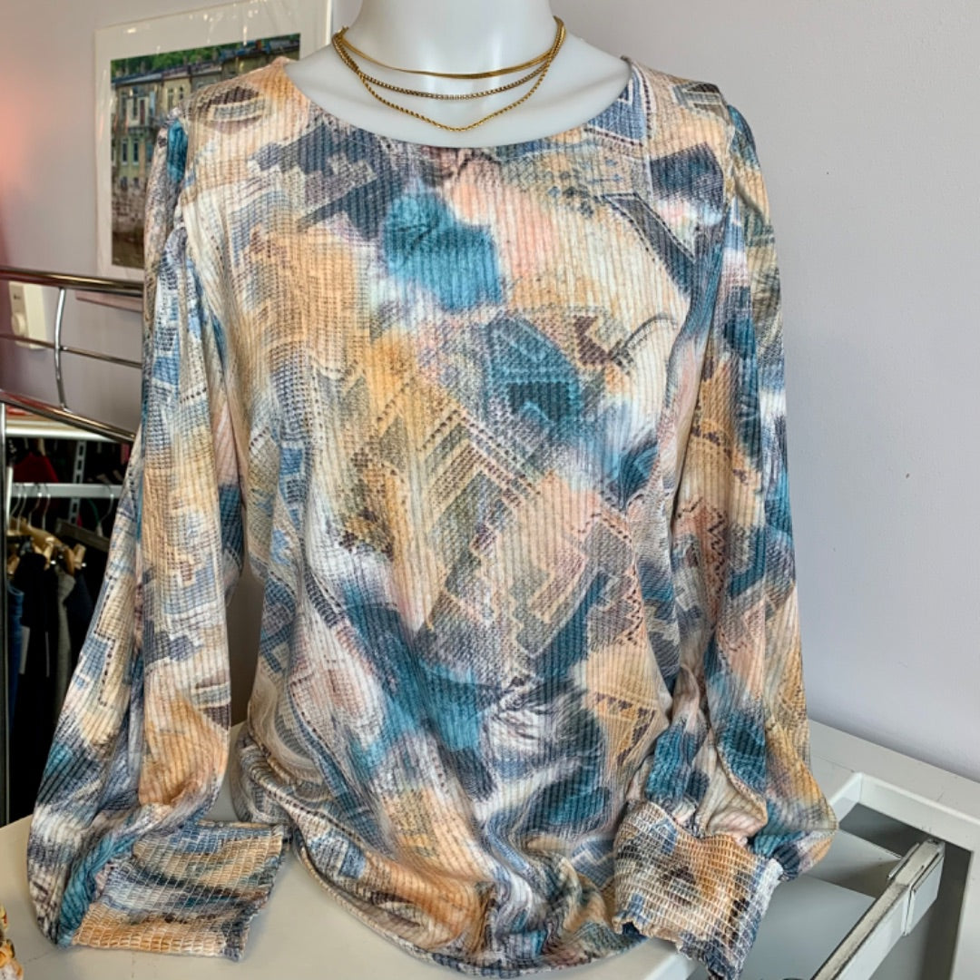 Soft jersey top in subtle rib relief.